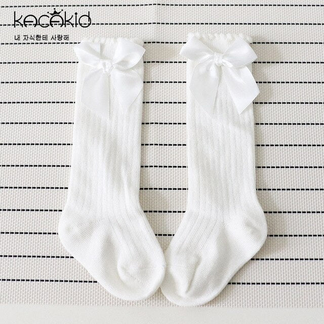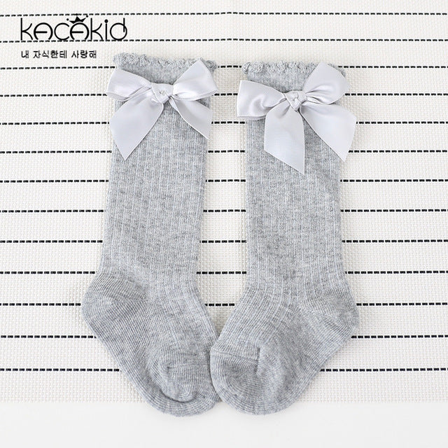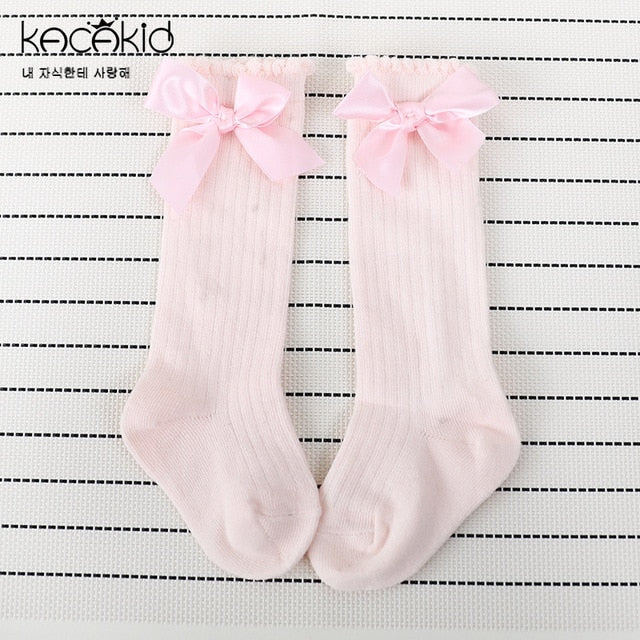 Combed Cotton Baby Socks Bow Lace Meia Baby Girls Socks Knee High Kids Infant Anti Slip Leg Warmers Socks Sweet Princess Socks
